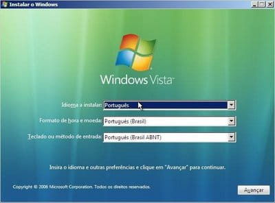 Como reiniciar o PC com o DVD de instalação do Vista