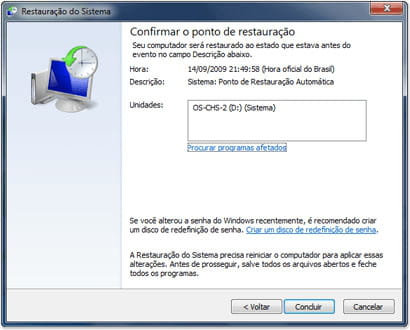 Restauração do sistema: