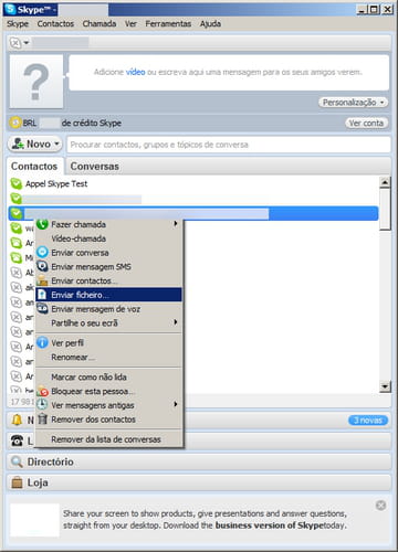 2. Clique do mouse: Você faz um clique direito sobre o contato online e seleciona "Enviar arquivo"