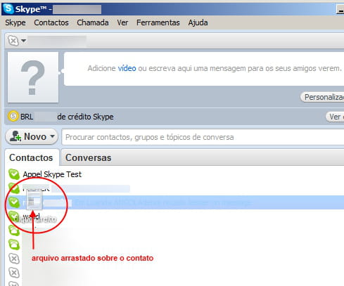 1. Arrastando e soltando: Você pode arrastar o arquivo diretamente para o contato que esteja online. Para iniciar a transferência basta a aceitação por parte do contato.