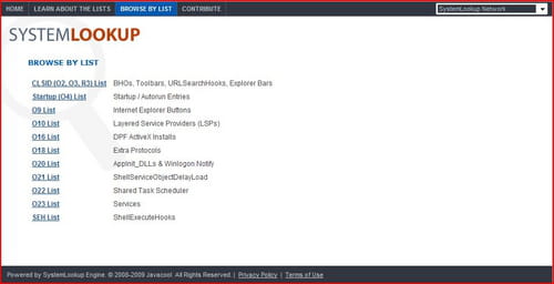 SystemLookup que permite analisar uma grande parte das entradas do relatório HijackThis. Este site é a continuidade do site cascops que era referência Web em matéria de análise de linha: