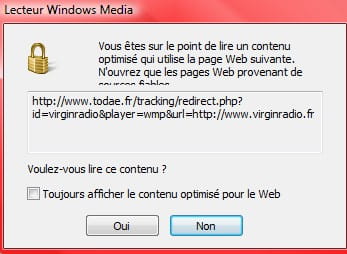 Neste caso, se você clicar em "Sim", o Windows média exibirá o site web do rádio, o que pode apresentar várias vantagens, como o nome da música, do artista, etc... mas, se a sua conexão Internet não for maravilhosa, clique em "não". Após clicar em "Não", o rádio vai parar. Clique duas vezes no rádio à esquerda: