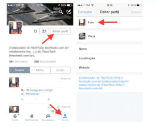 Editar o meu perfil, no topo da página. Escolha uma foto sua (700 KB, no máximo) e preencha os campos de modo a destacar os seus interesses, habilidades e originalidade. Atenção, você só terá direito a 160 caracteres para se descrever, seja audacioso! Evite mudar sua foto ou biografia frequentemente para não perturbar os seus