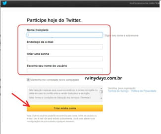 As inscrições não poderiam ser mais simples, só será pedido o seu nome, endereço de e-mail e senha. Feito isso, você só precisará escolher o pseudônimo com o qual você será designado no Twitter. Confirme sua inscrição por e-mail. Pronto, você já está no Twitter. O que fazer de interessante agora?: