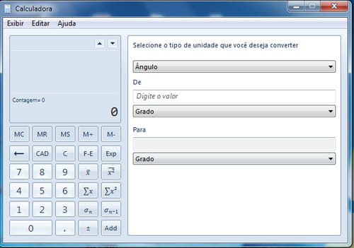 Windows 7 aprimorou a sua calculadora, adicionando novas funções. Nas calculadoras das versões anteriores, você dispunha do formato padrão e científico. Agora existem outros recursos, como a possibilidade de fazer cálculos estatísticos ou cálculos para programação.
